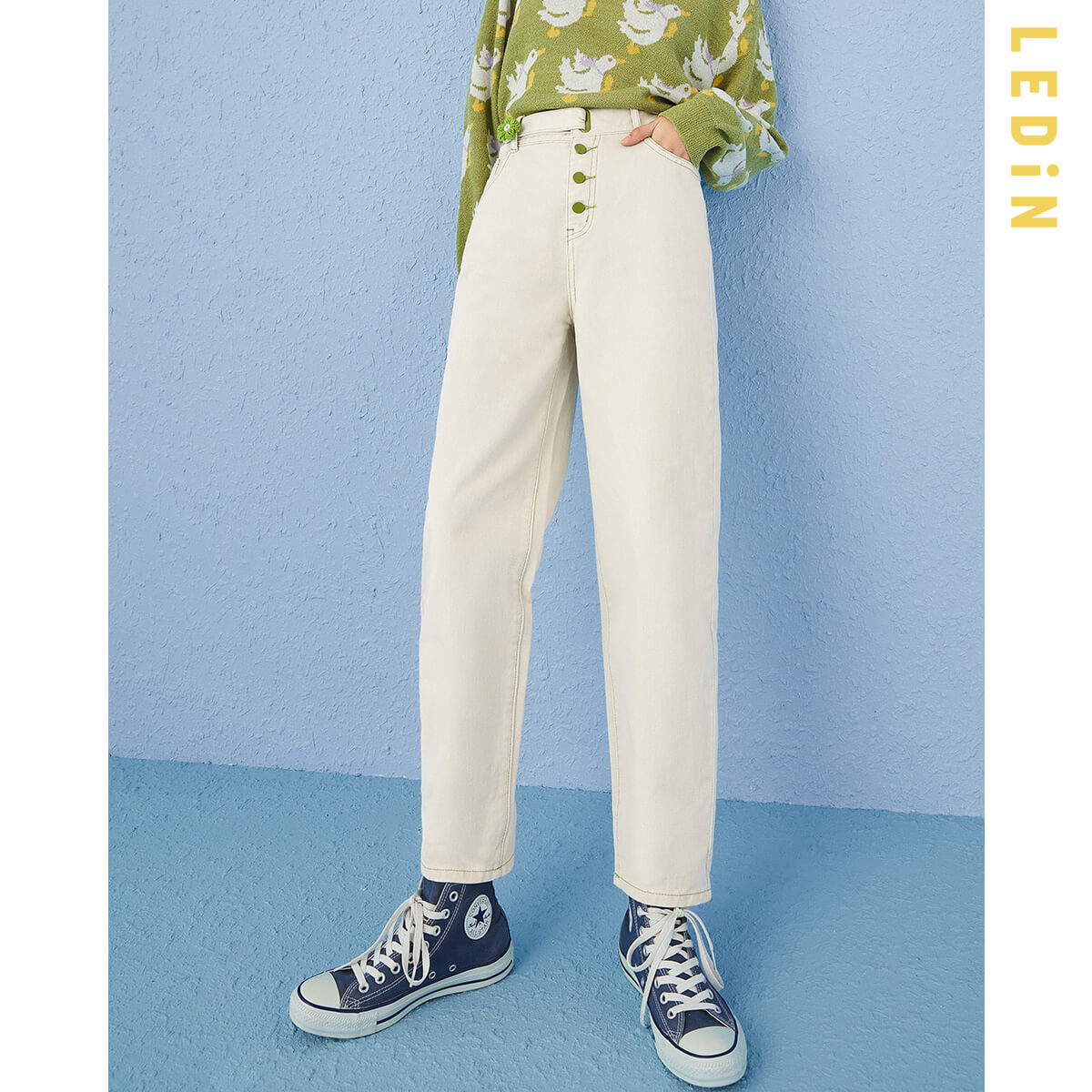 12分鐘前直筒牛仔褲女春季新款褲子女裝童趣花花牛仔褲寬鬆 - 套餐一 1入-NT$1099