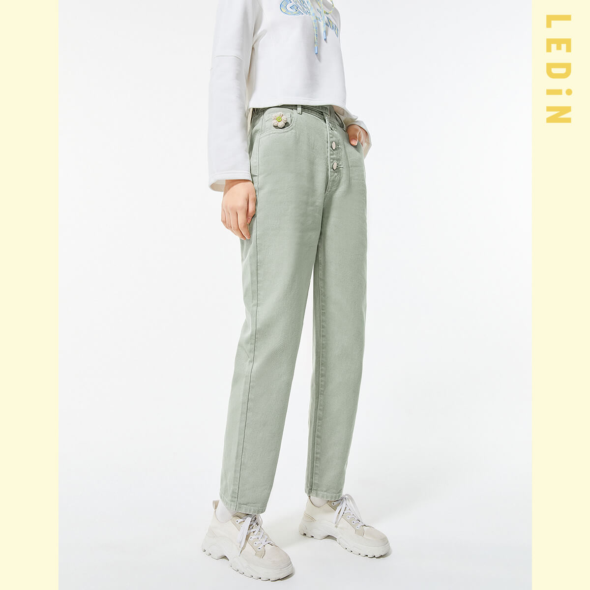 20分鐘前直筒牛仔褲女春季新款褲子女裝童趣花花牛仔褲寬鬆 - 套餐一 1入-NT$1099